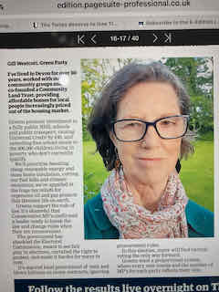 As Gill Westcott, the Green Party candidate, says in today’s Midweek Herald: ‘In this election, many will find tactical voting the only way forward.’